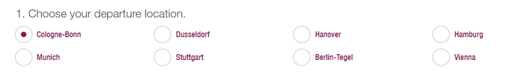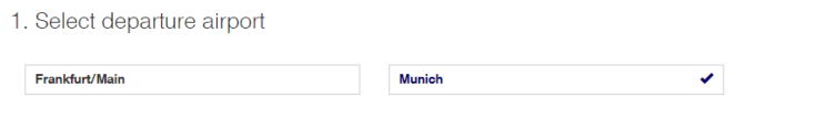 - Izaberete aerodrom odakle polećete. U Lufthanse-inom slučaju, to su Frankfurt i Minhen.