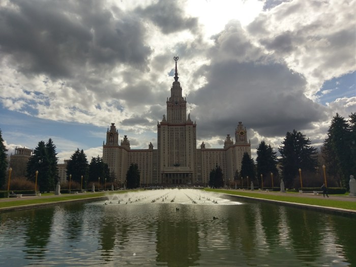 - Univerzitet Lomonosov – najstariji univerzitet u Rusiji. Univerzitet je prvobitno bio izgrađen na Crvenom trgu, ali ga je Katarina Velika preselila na današnju poziciju. Baš na ovom mestu je osnovana socijal-demokratksa organizacija koja je zagovarala abdukciju cara. Staljin je naredio izgradnju sedam nebodera po celom gradu, poznatih kao “7 sestara”. Jedna sestra se nalazi na Vrapčevim brdima i glavna je zgrada univerzitetskog kampusa. Do 1988. je bila najveća zgrada u Evropi. A kad saznate šta se sve unutra nalazi, zaboli te glava – koncerta sala, pozorište, muzej, biblioteka, bazen, frizerski salon, prodavnice, policijsku stanicu, poštu, banku i td. Sa Vrapčevih brda pruža se prelep pogled na grad i reku Moskvu.