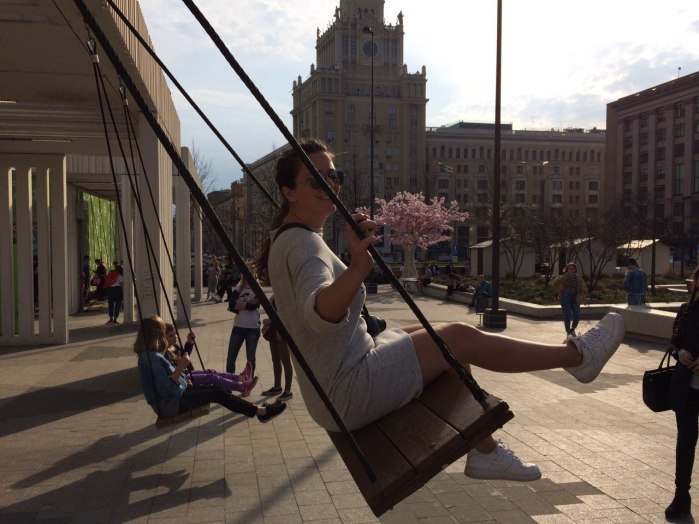 - Trijunfalni trg sa ljuljaškama – malo je reći da sam se oduševila ovim prizorom. Izlazimo iz metro stanice i prvo što ugledam su ljuljaške na sred trga. Ljudi sede, ljuljaju se, pričaju ili izvode vratolomije. Pravo je čudo sačekati red, jer nekako, dok se jedni ljuljaju kao da ne vide da milion drugih čeka svoj red.