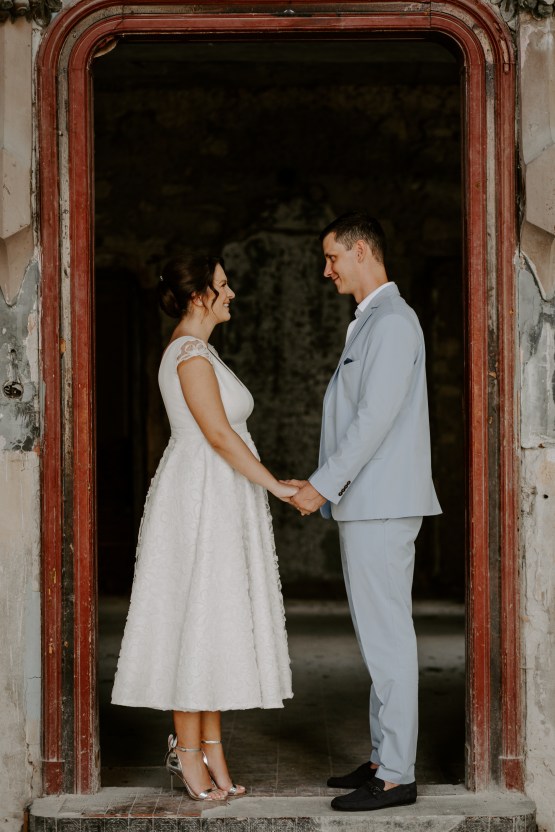 Odavno već gledam fotke iz Špicerovog dvorca i jako sam želela da ga posetim i vidim i sama stanje u kom je, nažalost, doveden i da shvatim zbog čega baš u takvom stanju izaziva toliko interesovanje. Špicerov dvorac se nalazi u Beočinu i projektovao ga je isti arhitekta koji je radio i zgradu Parlamenta u Budimpešti. Špicerovi su bili jako imućna, Nemačka porodica i želili su dom koji će to da prikazuje. I danas se vide ostaci te raskoši na prelepim stepenicama koje vode do ulaza u zamak, velelepnoj terasi u glavnom holu, crvenoj boji na vratima, plavim zidovima. Toliko ukrasa svuda, a zapravo jedno ništa. Pogodila me je njegova sudbina i želela sam da baš tu napravimo naše mladenačke fotke. Jeleni se ideja izuzetno dopala. Mi smo ga posetili i pre pojavljivanja u elegantnim toaletama, čisto da proverimo da li je naša ideja moguća.