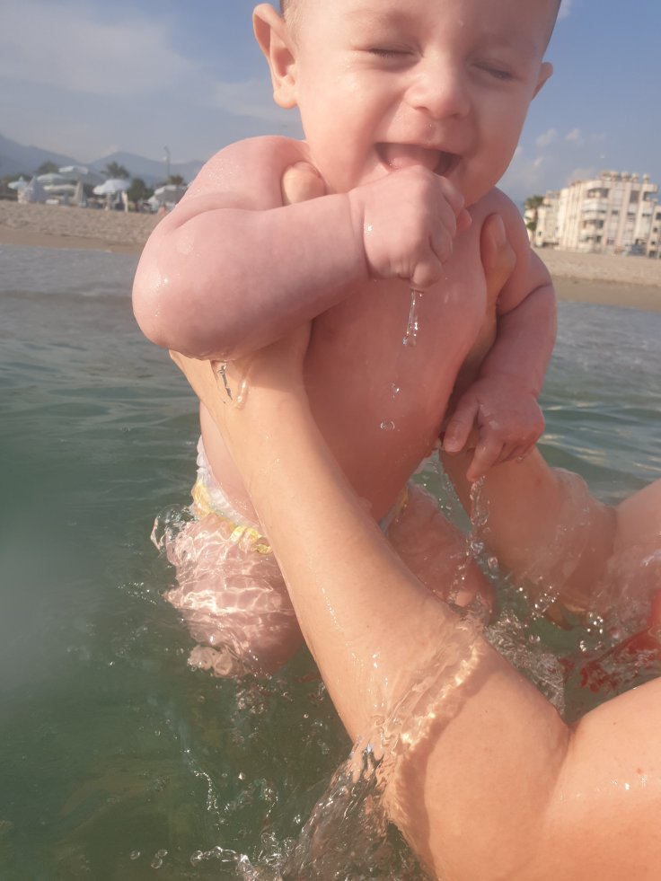 Još od 3. meseca, idemo sa Mihailom na bazen Dynamic Sport & Health Club, Baby Buć program i stvarno voli vodu i brćka se bez ikakvih problema. Ali prvi kontakt sa morem nije prošao glatko. Stigli na plažu, obukli odelce, metnuli zmajski kačket i krenuli ka vodi. Prišli jako blizu i ja krenula da mu pokvasim nogice, a on krenuo u plač. Zbunila sam se u sekundi. Kako sad to, pa ti voliš vodu, šta se sad desilo. Ništa, vratim se ka ležaljci. Ne vredi ništa na silu. Sutra ćemo ponovo probati. Al mi đavo ne da mira. Zašto sad tako reaguje?! Ne bude meni teško i angažujem mame na društvenim mrežama. Dobijem pregršt dobrih saveta i naružana novim znanjem, spremno ulazim u okršaj sa Mihailovim strahom već sledećeg dana. Sada se približavamo vodi znatno sporije. Dolazimo do peska. Tu mu dajem da pipne pesak i objašnjavam šta je to, a i gledam da tu istu ruku ne gurne u usta. Kad sam uvidela da je dobro prihvatio novo saznanje, krećemo dalje. Sve više smo bliži vodi. Sad su na redu kamenčići. I njega opipava i baca i ja odlučujem da je sada vreme za vodu. Priližavamo se i čekamo da talas dođe do nas. Dodiruje mi stopala, a ja se oduševljavam i cičim da bi on shvatio kako je to jako lep osećaj. Onda spuštam i njegove nogice da ih talas zapljusne i on ih instiktivno diže. Dolazi sledeći talas i već je opušteniji. Plača uopšte nema. Već pri sledećem talasu, spušta stopalca i zaranja ih u pesak i kad ga talas zapljusne, uopšte ne odiže stopalca. Ohrabrena ovom reakcijom, krećem da mu kvasim stopala i ručice i moja mama mi pomaže u tome. Sve vreme se smejemo i cičimo i pričamo s njim. Dobro reaguje i polako ga ubacujemo u vodu. Srećan je, smeje se i ja sam u tom trenutku najsrećnija na svetu. Uspeli smo!