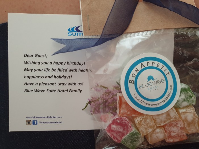 Već sutradan smo imali jako bitan dan…mamin rođendan. Osoblje hotela nam je priredilo još jedno iznenađenje – slatkiši iz Turske sa posvetom. Jako lep gest.