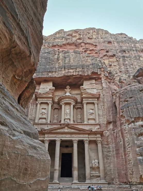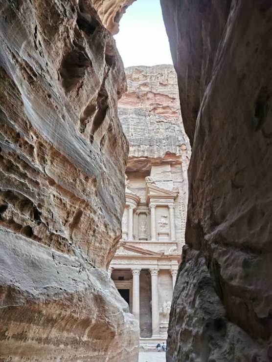 El Khazneh je prelepa završnica ovakvog reljefa, kao neka nagrada. Riznica izranja iz klanca prvo svojim desnim stubovima, a onda se ukazuje u punom sjaju, sa velikim platoom ispred.