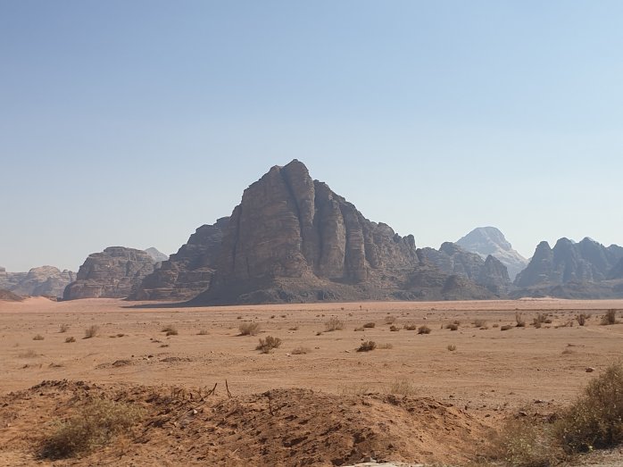 Imamo sat i po vremena vožnje do Wadi Ruma. Krajolik prestaje da bude izričito pustinjski i nazire se žbunje, recimo, pošto nisam vrhunski poznavalac flore u ovom delu sveta.