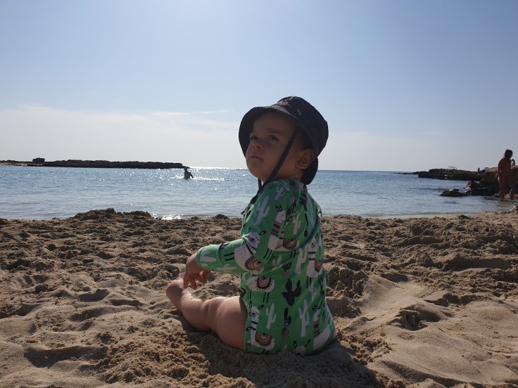 Uspele smo i da se okupamo, a i da Mihailo brčne noge. Uživali smo na plaži, koja je bila puna ljudi iako je sezona završena. Voda je prelepo tirkizna, plaža peščana, postoji bar na plaži i toaleti za presvlačenje i tuširanje.