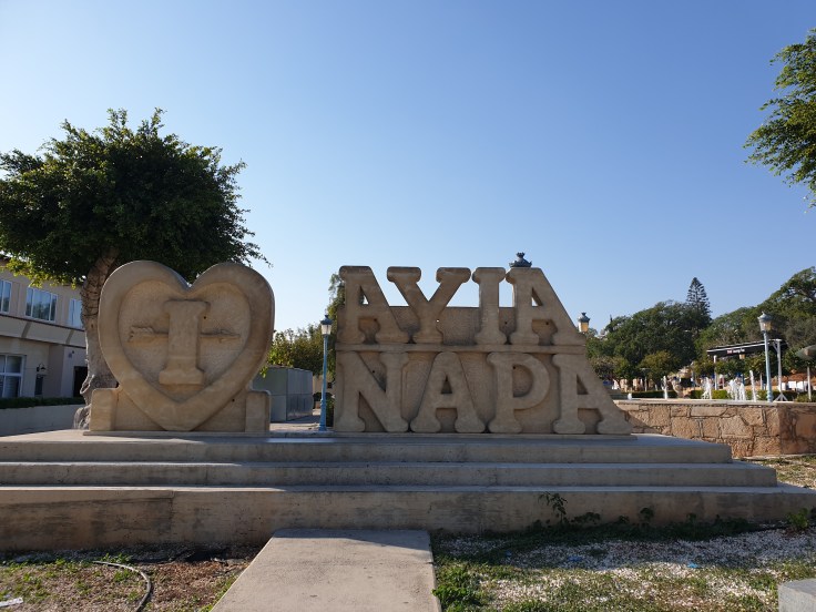 Sledeći dan je bio rezervisan za obilazak Aja Nape. Naročito smo se radovale plaži Nissi, koja je najpopularnija na celom ostrvu. Autobuska karta za Aja Napu iz Larnake košta 5 EUR u jednom smeru. Deca do 6 godina ne plaćaju kartu. Vozači ne izlaze da vam ubace prtljag – kolica…sami se snalazite.