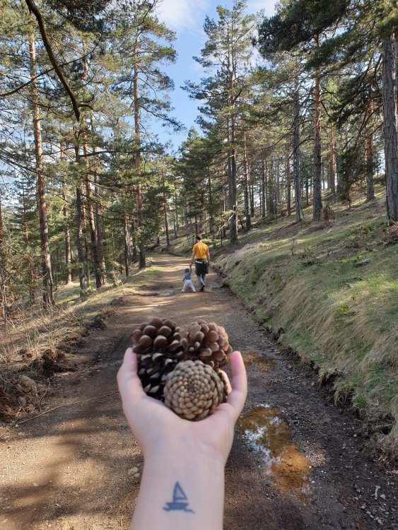 Divčibare posećujemo baš u ovo vreme pandemije, jer nam je boravak u stanu dozlogrdio, a ovde šetamo po šumama, upijamo lepote pogledom, dišemo punim plućima, šutiramo kamenčiće, beremo cveće i skupljamo šišarke. Mihailo više nije u fazonu da prati naše želje, već, dečko ima svoje i želi da ide i da radi baš ono što je on namerio. Sada nam se dupliralo vreme potrebno da stignemo tamo gde smo namerili. Ali je pravo uživanje gledati ga kako istražuje i uči nove reči. Bere cet i skuplja kiake.