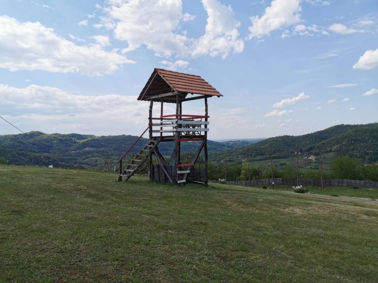 Na obroncima planine Rudnik, okruženo šumama i proplancima, nalazi se etno selo Zavičaj. Mi smo smešteni u četvorokrevetnoj kućici gde imamo sve kao i kod kuće.